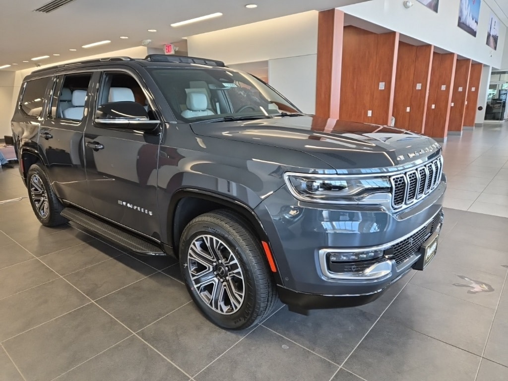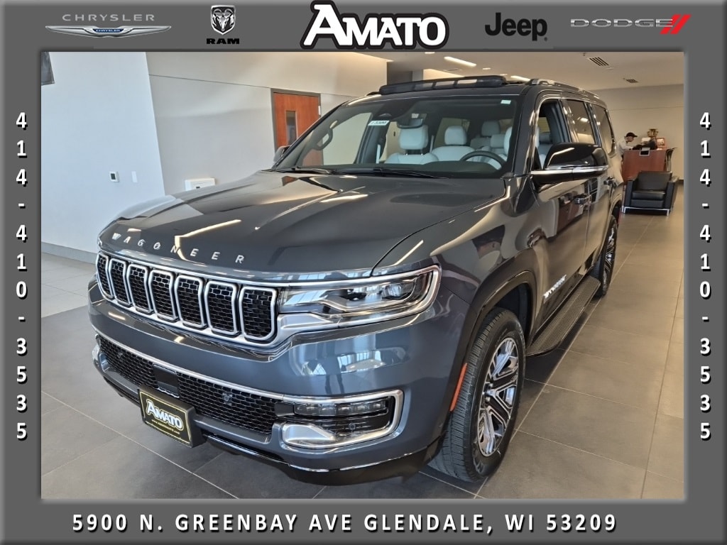 Additional premium touches include a 3-panel sunroof, reversible cargo mat, cargo cover, front license plate bracket, adaptive rear auto-leveling suspension, dual stainless steel exhaust, trailer wiring harness, and power-adjustable exterior mirrors, making the 2025 Wagoneer 4x4 a fully equipped SUV ready for luxury, adventure, and family duty alike. Price includes: $2000 - 2025 National Overaged Select Inventory Bonus Cash. Exp. 11/03/2025