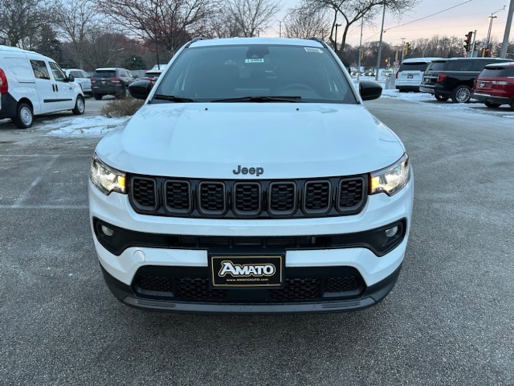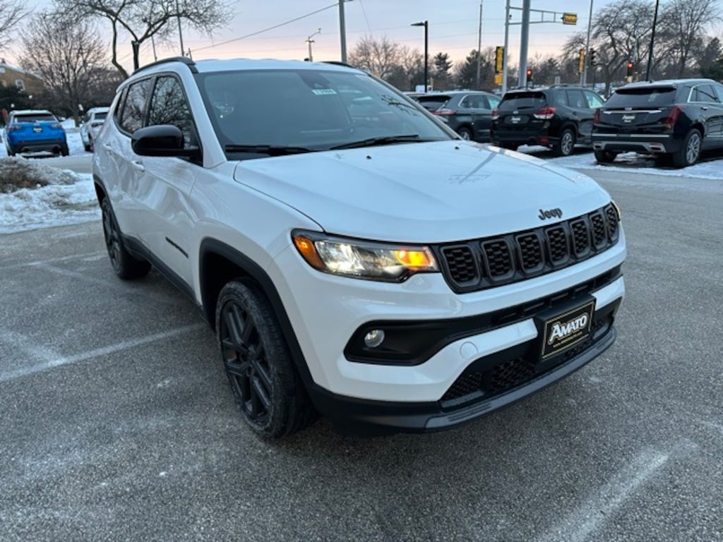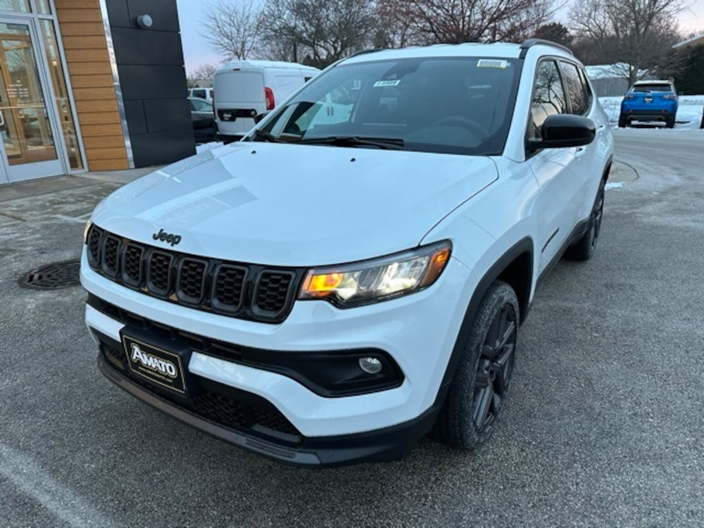 The 2026 Jeep Compass Latitude Altitude 4x4 in Bright White Clearcoat delivers a sharp, modern look paired with Jeeps capable all-weather performance. The Altitude package adds blacked-out accents, body-colored bumpers, and distinctive 19-inch painted aluminum wheels for a confident, upscale appearance. LED lighting with automatic high beams, deep-tinted glass, and sleek black exterior trim give this Compass a bold road presence, while practical touches like heated power mirrors and cornering lights enhance everyday usability.