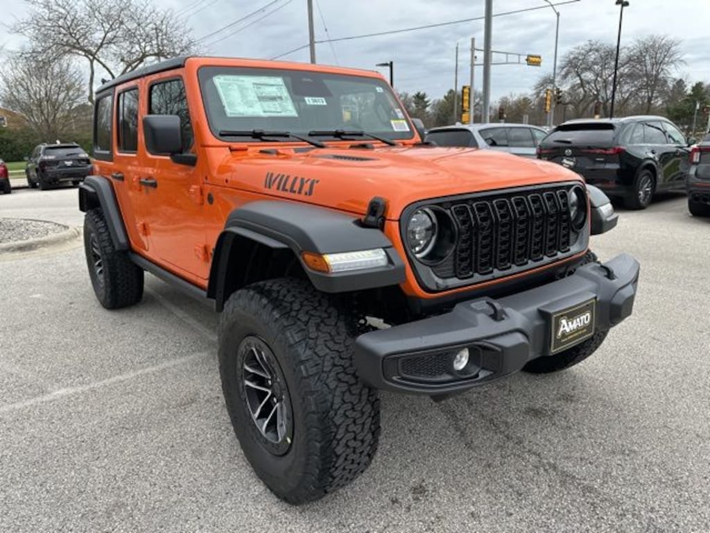 The 2026 Jeep Wrangler Willys 4-Door 4x4 is a masterclass in rugged heritage, coated in the high-energy, eye-catching Joose exterior paint. This build is specifically designed for those who demand serious off-road prowess right from the factory, featuring the massive Xtreme 35 Tire Package. This upgrade equips the vehicle with LT315/70R17C 35-inch tires mounted on 17-inch machined wheels with black pockets, supported by a specialized 35-inch tire suspension and a 4.56 rear axle ratio for maximum crawling capability.