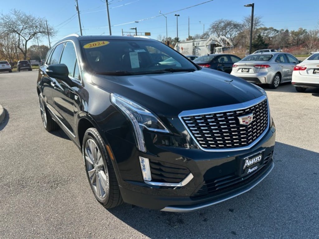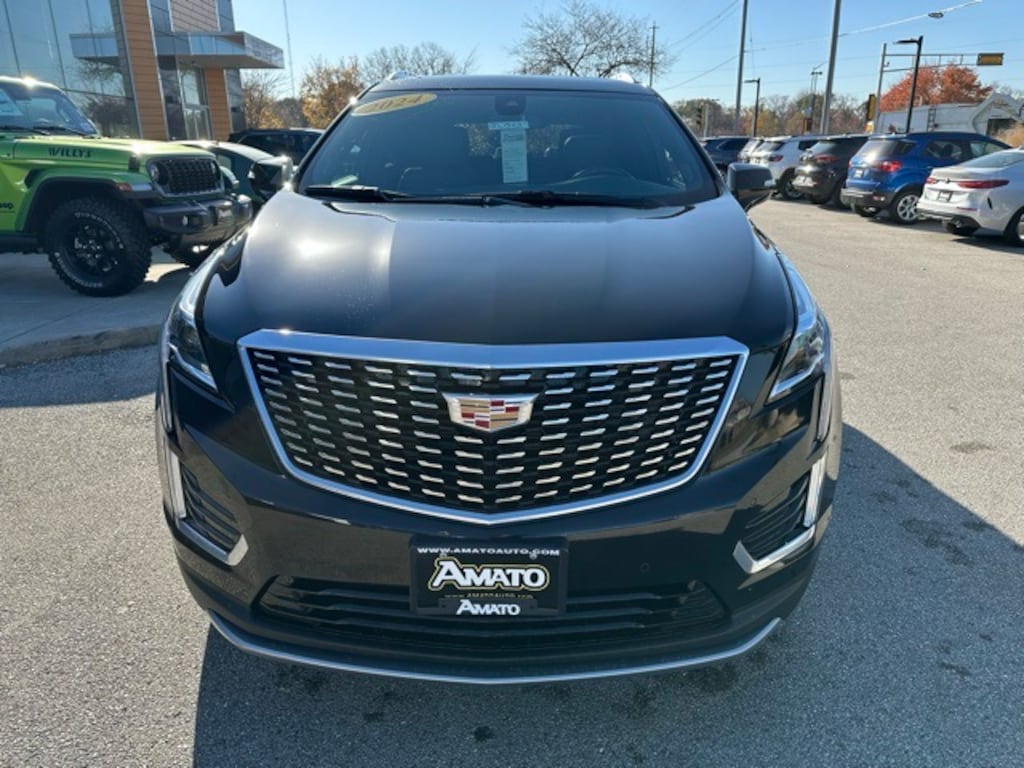 The 2024 Cadillac XT5 Premium Luxury in Crystal White presents a refined and confident presence with clean body lines, bright roof rails, LED headlamps, and a panoramic UltraView sunroof that opens up the cabin visually and physically. Its 20-inch alloy wheels, hands-free power liftgate with Cadillac projection lighting, and heated power-folding mirrors with turn signal indicators bring both convenience and elegance to everyday driving. Deep-tinted glass, a rear spoiler, and active aero shutters contribute to both style and efficiency.