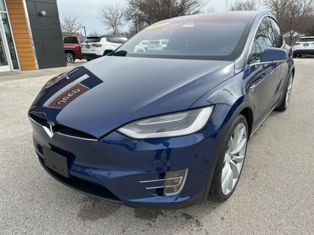 This 2017 Tesla Model X 75D is finished in Deep Blue Metallic over a Black interior and powered by a dual motor electric drivetrain paired with a 1-speed automatic transmission and automatic full-time all-wheel drive.